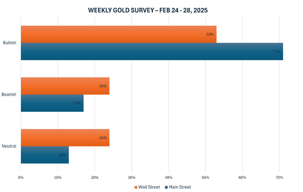Asset Strategies International的总裁兼首席运营官Rich Checkan表示:“看涨。黄金最近更频繁地出现在新闻周期中。这加上市场和政治上的持续不确定性,表明黄金将很快开始测试3000美元。我相信下周我们将朝着这个方向再迈进一步。”