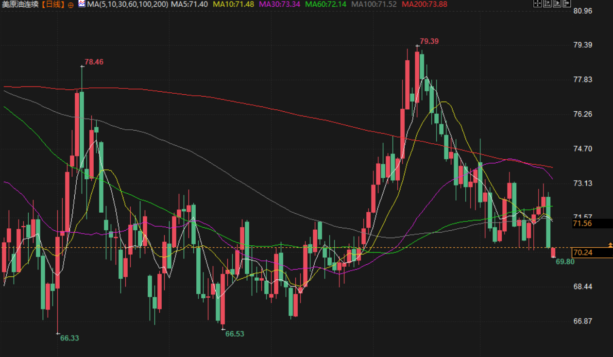 美原油交投于70.25美元/桶附近,早间开盘跌破70美元/桶关口最低至69.80美元/桶关口,伊拉克石油出口有望增长18.5万桶/日;投资者正努力应对中东风险溢价消退以及乌克兰潜在和平协议的不确定性。