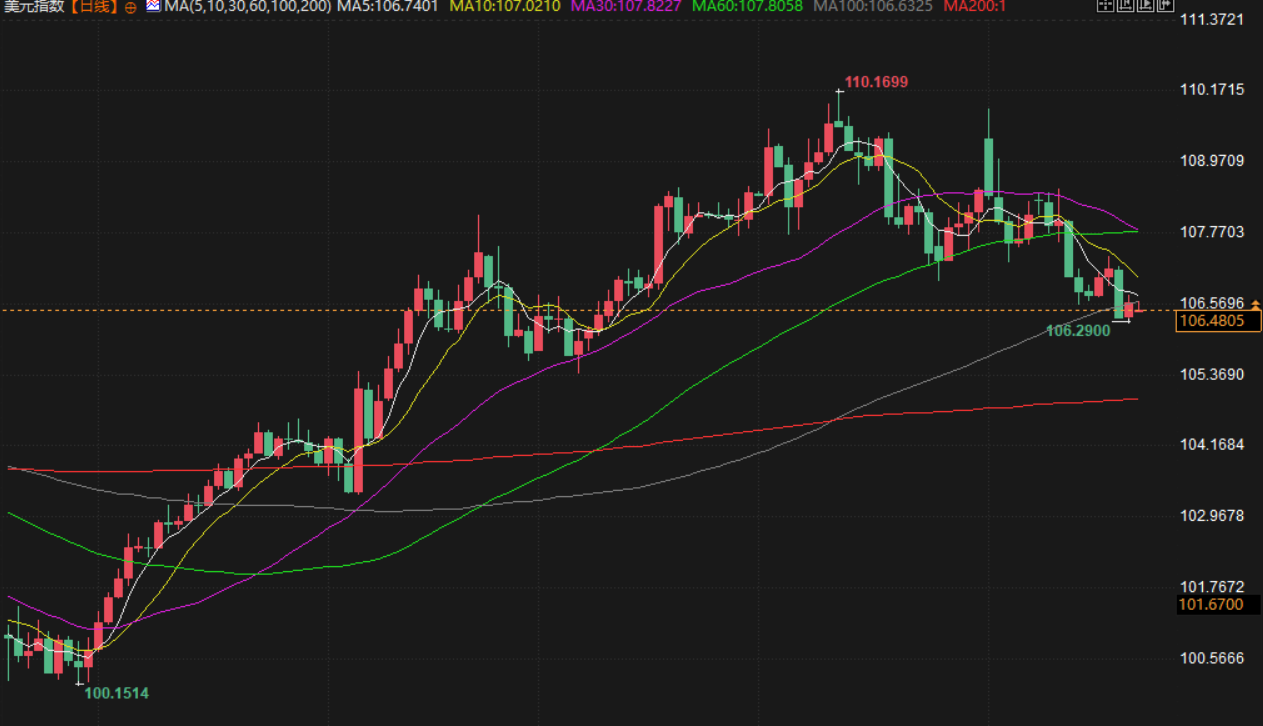 美元指数尾盘上涨0.2%,报106.59。与此同时,英镑下跌0.3%,至1.2631美元,受到美元整体走强的拖累。