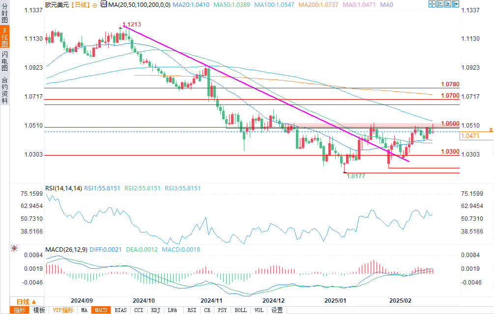 在相对强弱指数(RSI)高于50的支撑下,多方需要升破1.0530以创出更高的高点,并将涨势扩大至1.06。