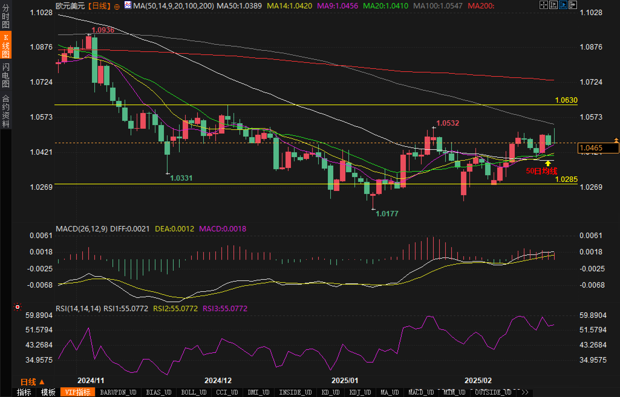 然而,若欧元/美元未能维持在支撑位附近,特别是若跌破50日EMA支撑,市场可能会面临进一步下行压力。下行的关键支撑位在2月10日的低点1.0285,如果价格跌破该水平,可能会加剧下行风险,甚至测试更低的技术水平。