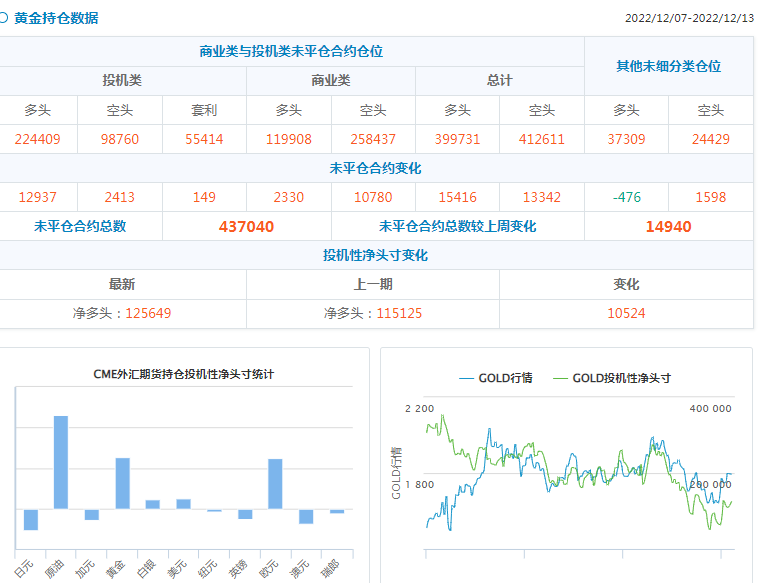 截至2022年12月13日的一周内,投机者持有的英镑净空头头寸减少25739手合约,瑞士法郎净空头头寸减少11811手合约,欧元净多头头寸为124715手合约,日元净空头头寸减少53188手合约。