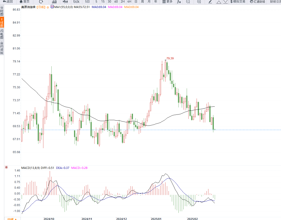 市场需求疲软叠加供应变数,油价本月累计下跌近5%自2月以来,原油价格累计下跌近5%。特朗普政府在贸易政策上的强硬立场使投资者情绪受挫,而亚洲国家需求增长乏力进一步加剧了市场压力。