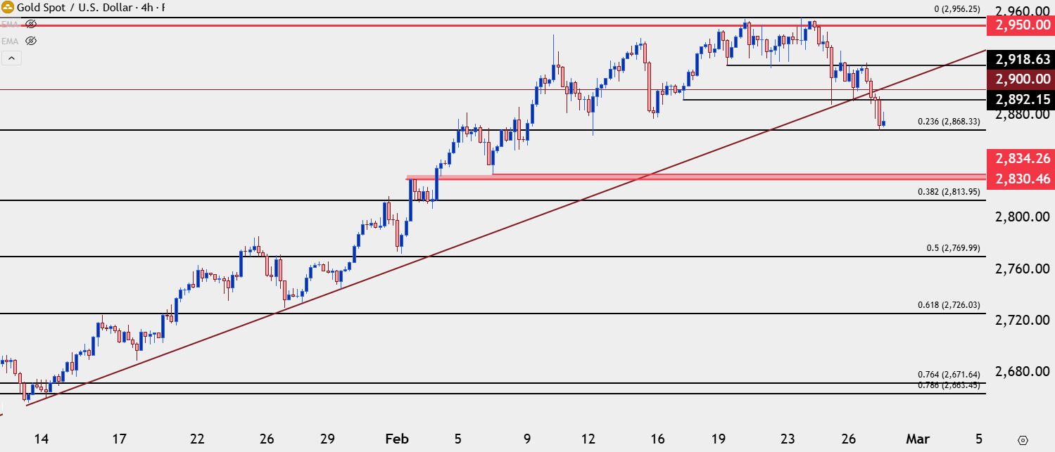 目前,黄金已回调了自去年12月低点以来涨幅的23.6%,而这一斐波那契回调位正是目前支撑今日价格低点的因素。该价位在2868美元,而此前的支撑位(约2892美元)可能成为更低的高点阻力位。