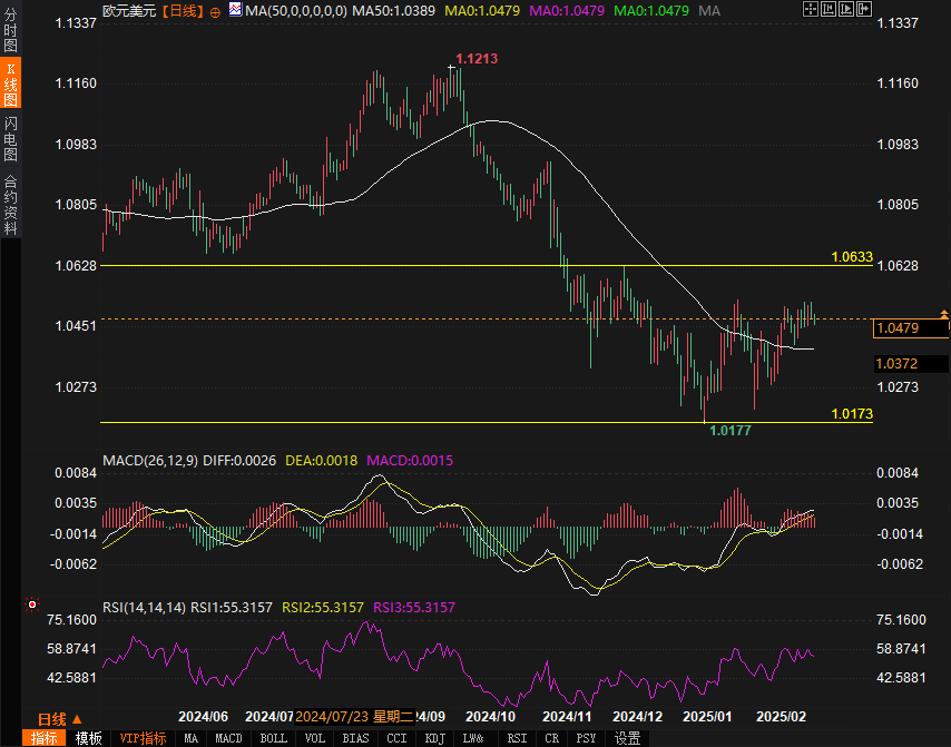 标题:欧元1.0500防线告急!关税阴云下RSI60久攻不破,多空决战在即?