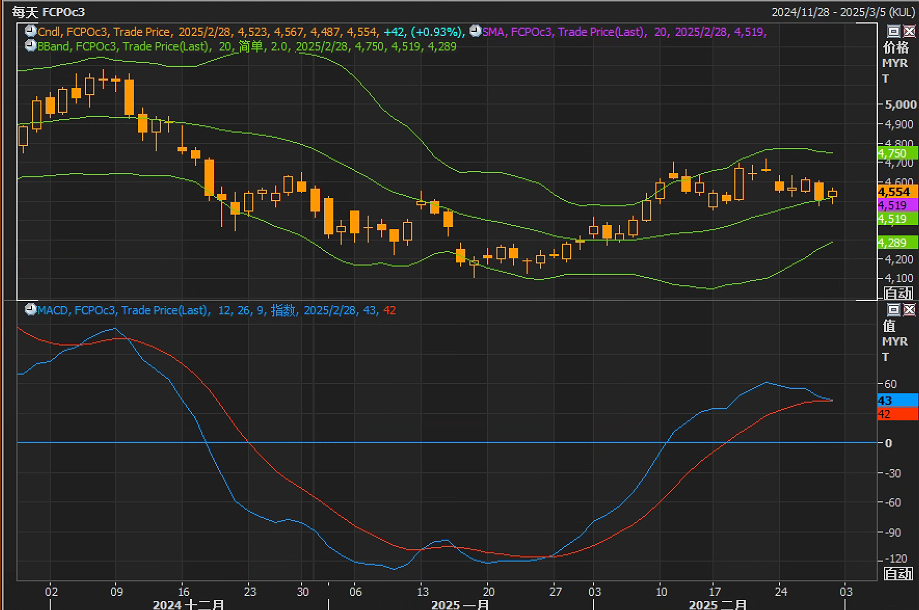 技术面上,若棕榈油价格能够稳固在200日均线上方,则可能为进一步上涨提供动力。但需注意,布林带上轨和下轨的波动可能会导致价格出现较大的震荡,因此投资者应密切关注市场情绪的变化。