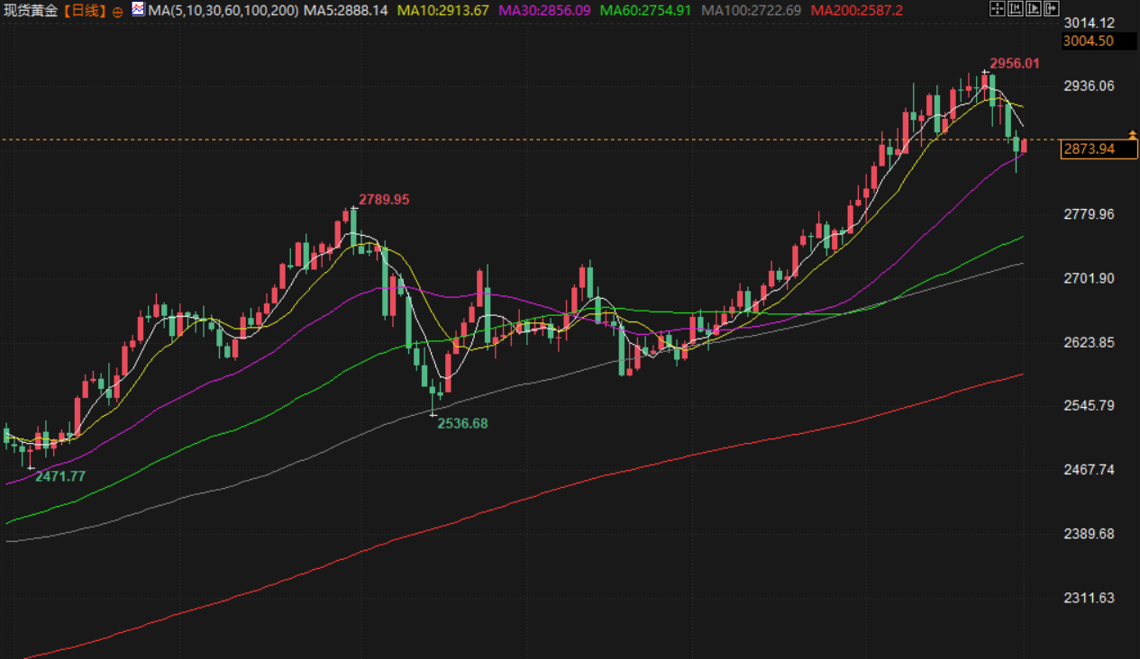 现货黄金交投于2872.66附近,黄金价格上周五下跌逾1%,因美元接近两周高点,此前美国通胀数据符合预期,表明美联储可能会对进一步降息采取谨慎立场;