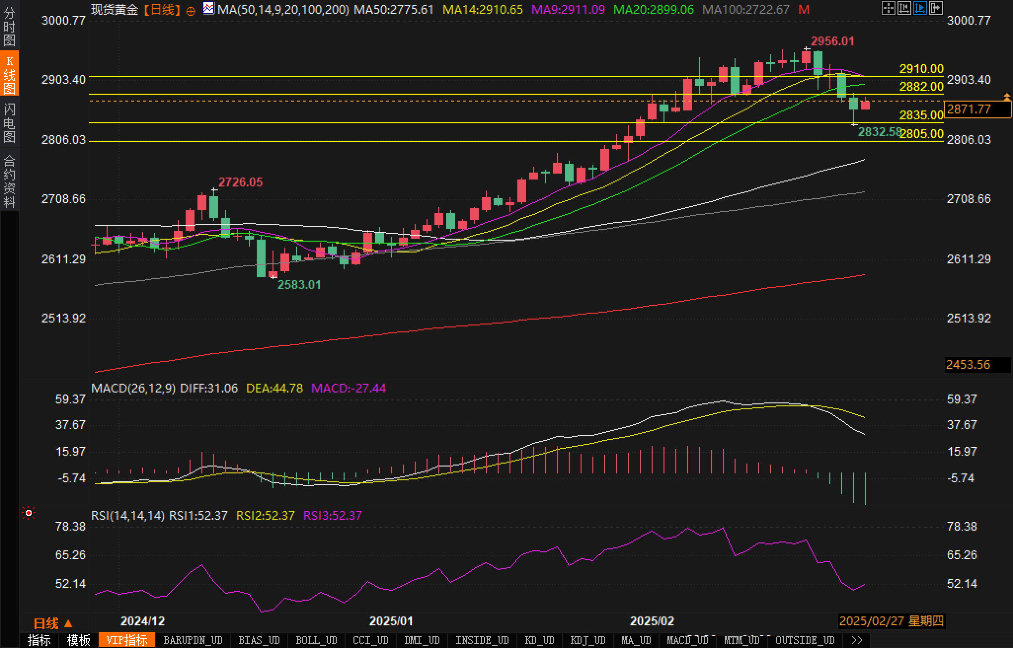 从技术走势来看,黄金近期的反弹虽然保持强劲,但目前仍未实现有效突破前期高点2880美元的关键阻力。从日线级别来看,黄金走势已初步摆脱了此前的下跌压力,开始进入技术性反弹的阶段。