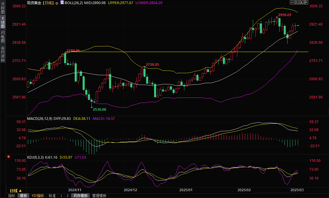 现货黄金窄幅震荡,目前交投于2917.62美元/盎司附近。金价周三接近收平,收报2918.90美元/盎司,尽管避险情绪减弱,金价一度跌至2894.26美元/盎司,但