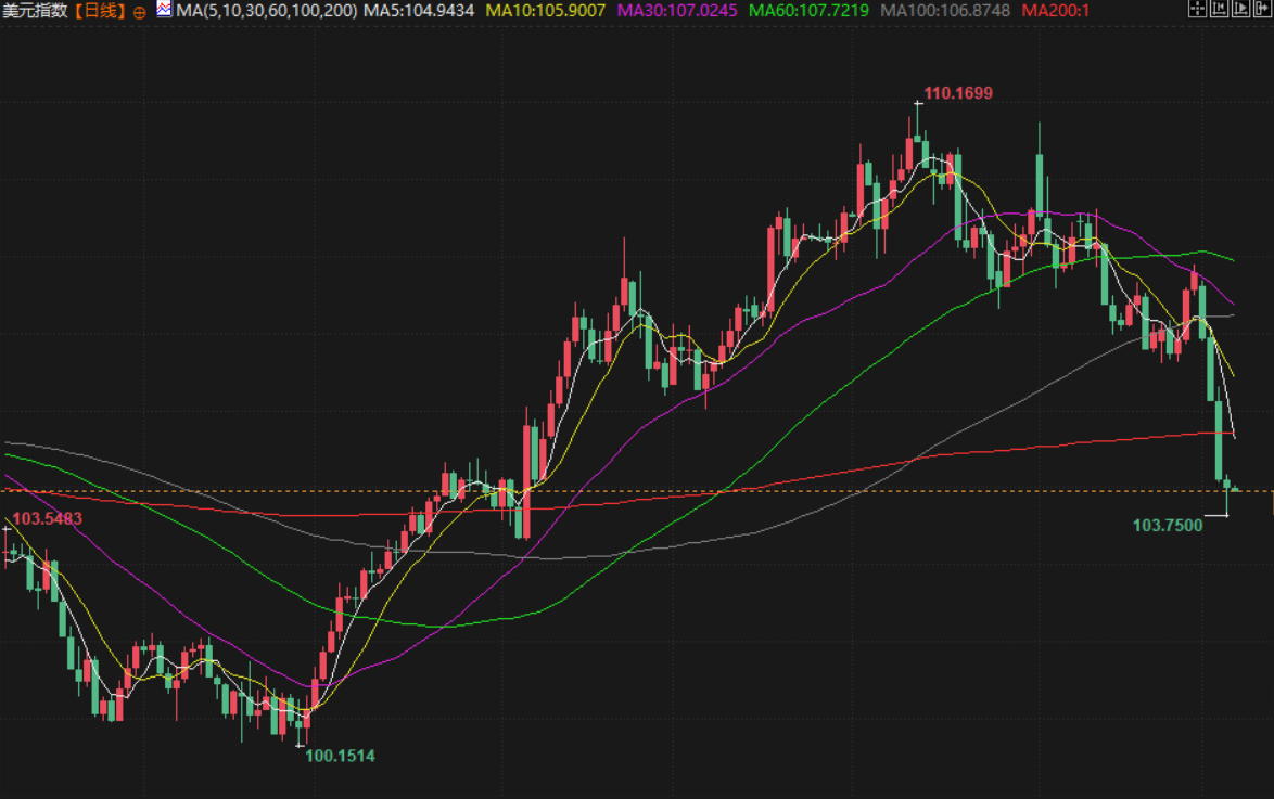 美元指数盘尾下跌 0.3%,报 104.12 。