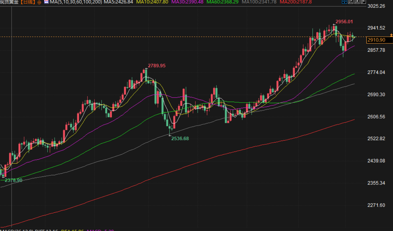 现货黄金交投于2912.82附近,金价周四下跌,受美国公债收益率上升和获利回吐影响,而市场注意力转向周五的非农就业数据,以了解美联储的货币政策动向;
