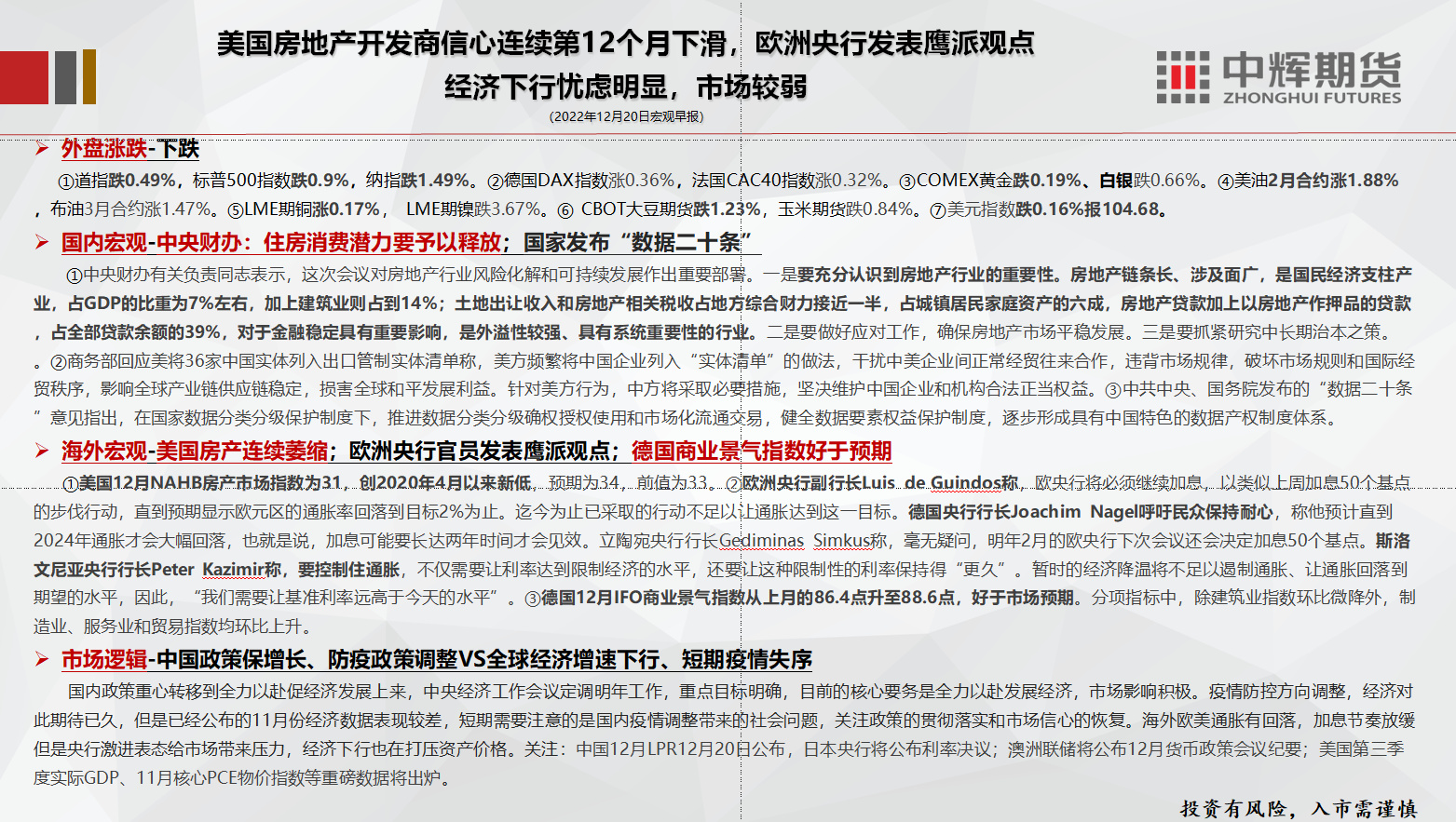 标题:中辉期货宏观早报:央行激进表态给市场带来压力,经济下行也打压资产价格