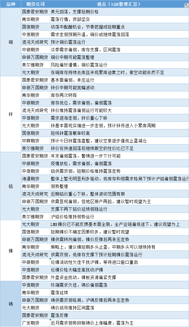 期货公司观点汇总一张图:12月21日有色系(铜、锌、铝、镍、锡等)