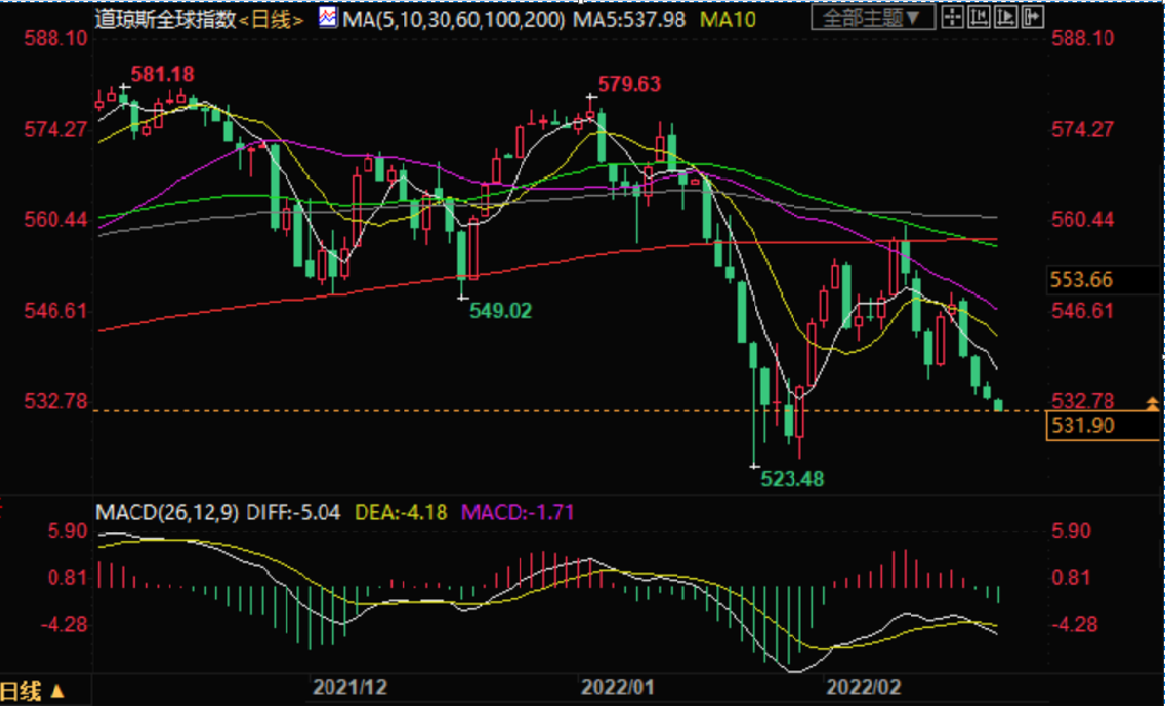 道指及标普500指数录得六连阴,收于2020年以来的低点,熊市跌幅进一步扩大。其中,道指较其历史高点下跌21.2%,标普500指数较1月纪录高位跌去24.3%,纳指较去年11月创造的历史新高下挫逾33%。