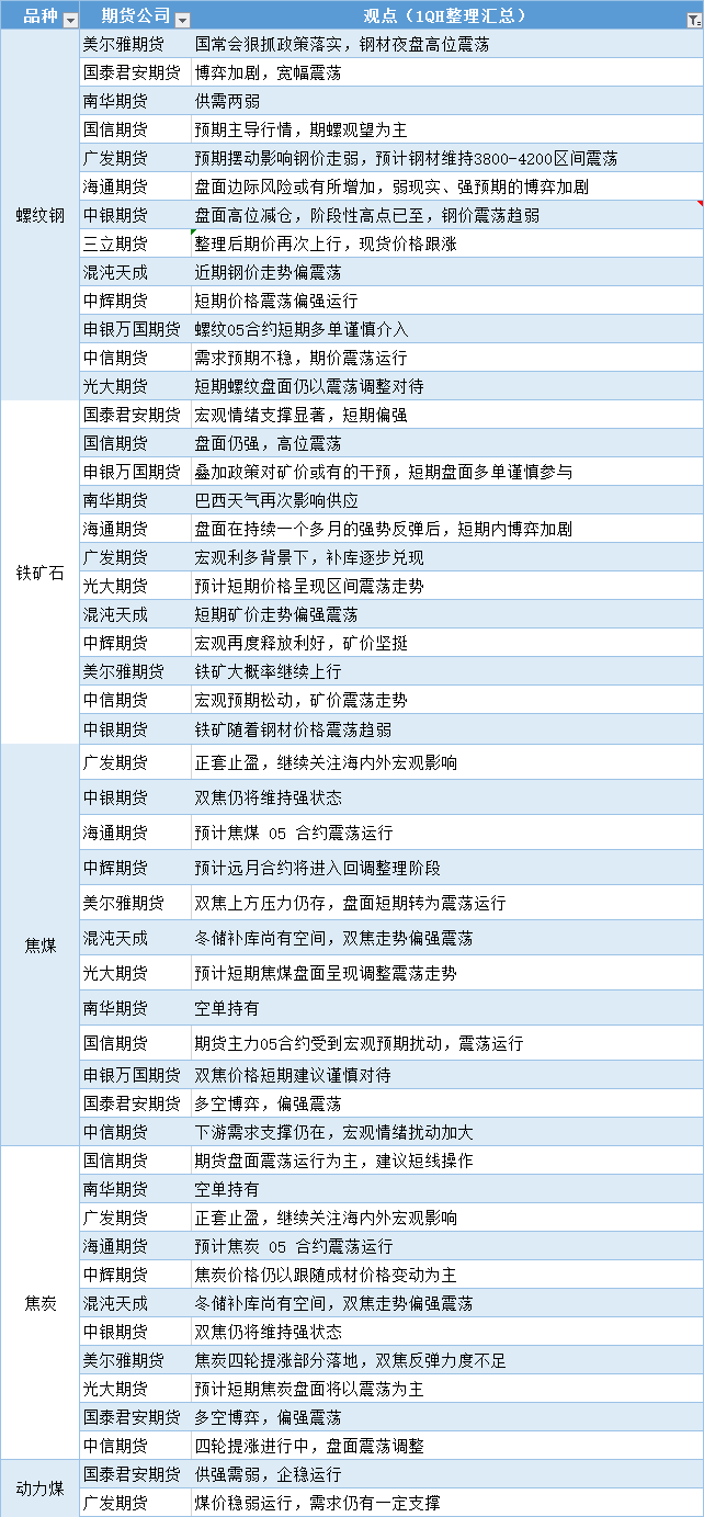 期货公司观点汇总一张图:12月22日黑色系(螺纹钢、焦煤、焦炭、铁矿石、动力煤等)