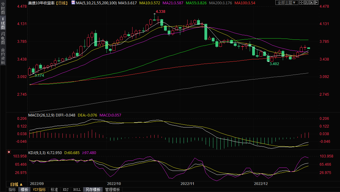 较长期美国国债收益率周三几乎没有变化,投资者等待将于周五公布的通胀数据,以寻找价格压力是否继续缓和的进一步线索。美国10年期国债收益率周三录得十字星,暗示上涨动能有所减弱,周四亚市则小幅走弱,美国10年期国债收益率目前下跌0.84%,交投于3.651%附近。