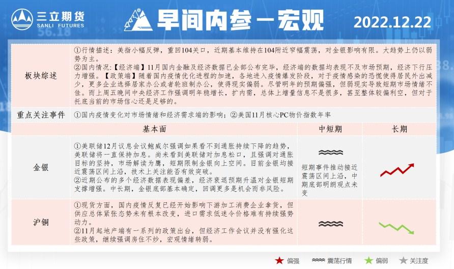 三立期货12月22日早间内参——宏观