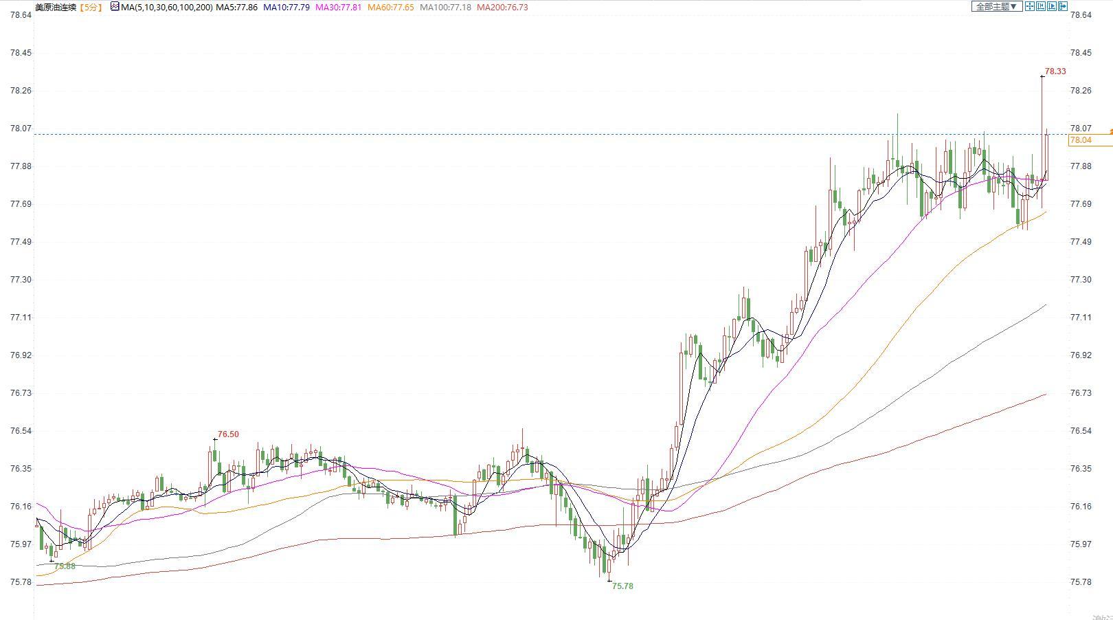 美国原油价格5分钟图显示