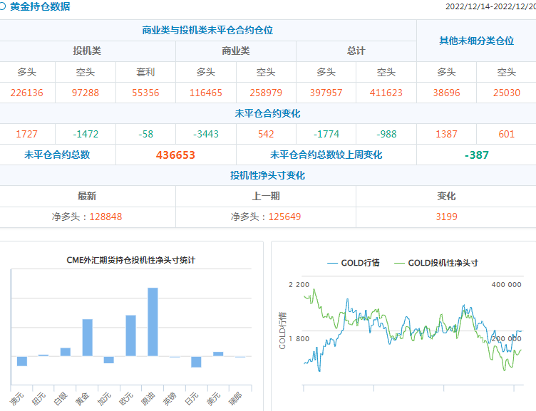 能源类持仓:截至12月20日当周,NYMEX、ICE市场的天然气期货净空头持仓增加1558手至36030手,投机者将WTI原油净多头持仓增加18416手至181640手。