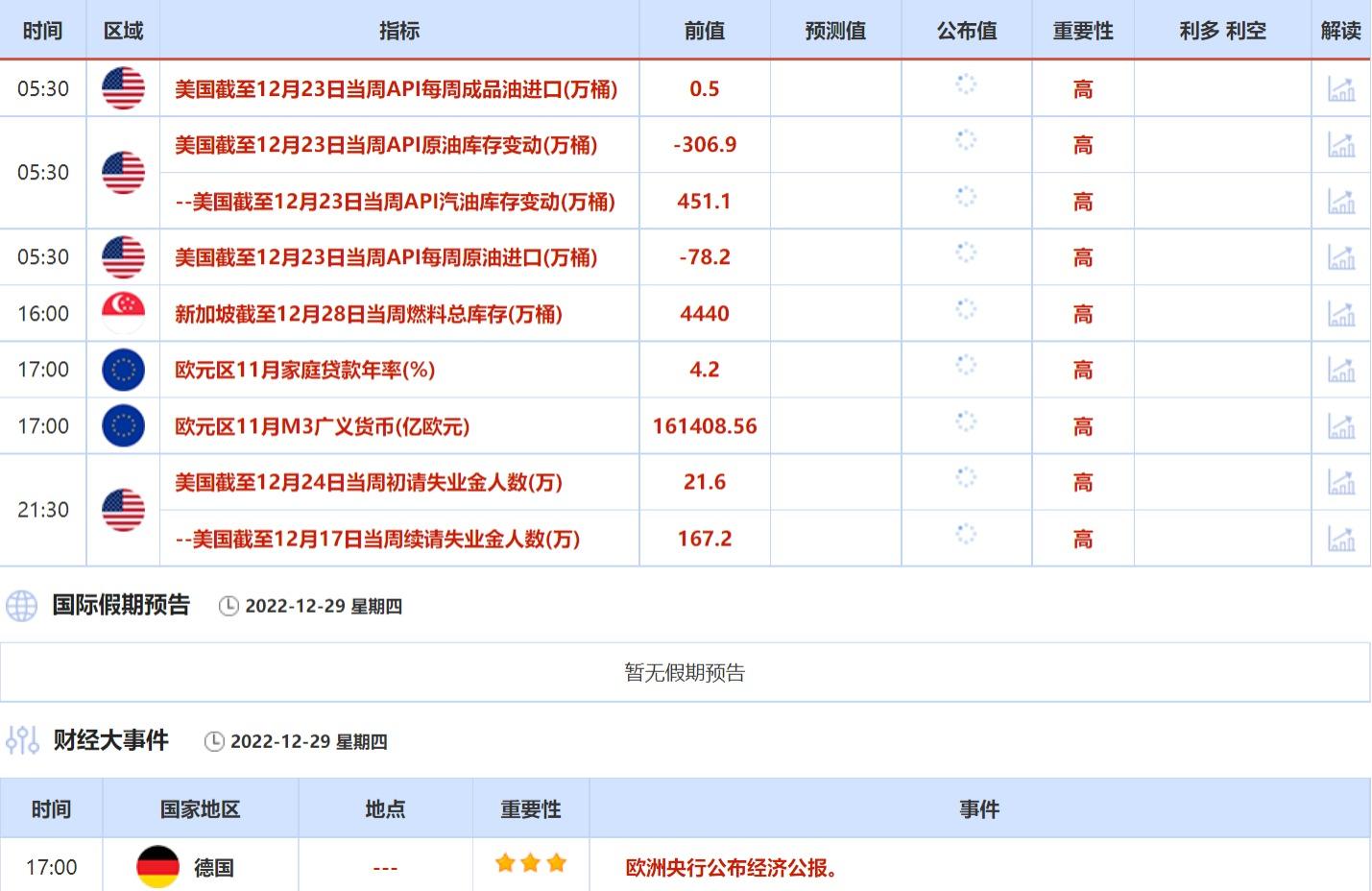 ④12月29日(周四)关键字:美国截至12月23日当周API原油库存变动,美国初请失业金人数,欧洲央行经济公报