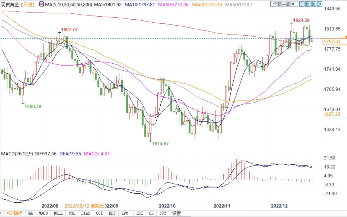 他说:“美联储不那么鹰派可能会导致美元走软,这反过来可能给黄金多头更多的喘息空间和能量,使其在明年反弹,将金价推高至接近每盎司1900美元。”