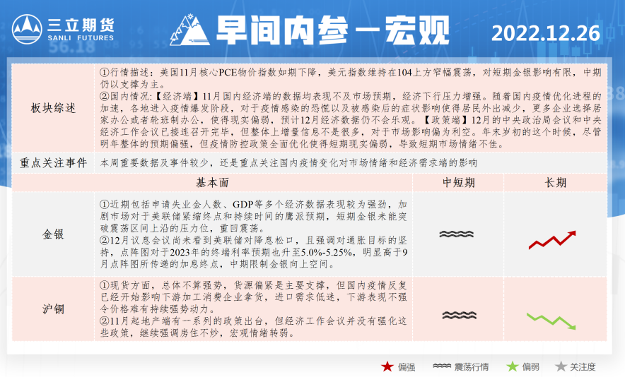 三立期货早间内参显示,金银中短期偏震荡,长线偏多;沪铜中短线偏向震荡,长线偏空。
