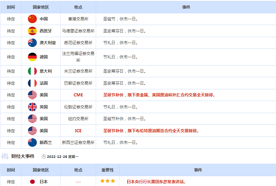标题:12月26日财经早餐:本周市场迎圣诞假期交投或清淡,关注日本央行会议纪要