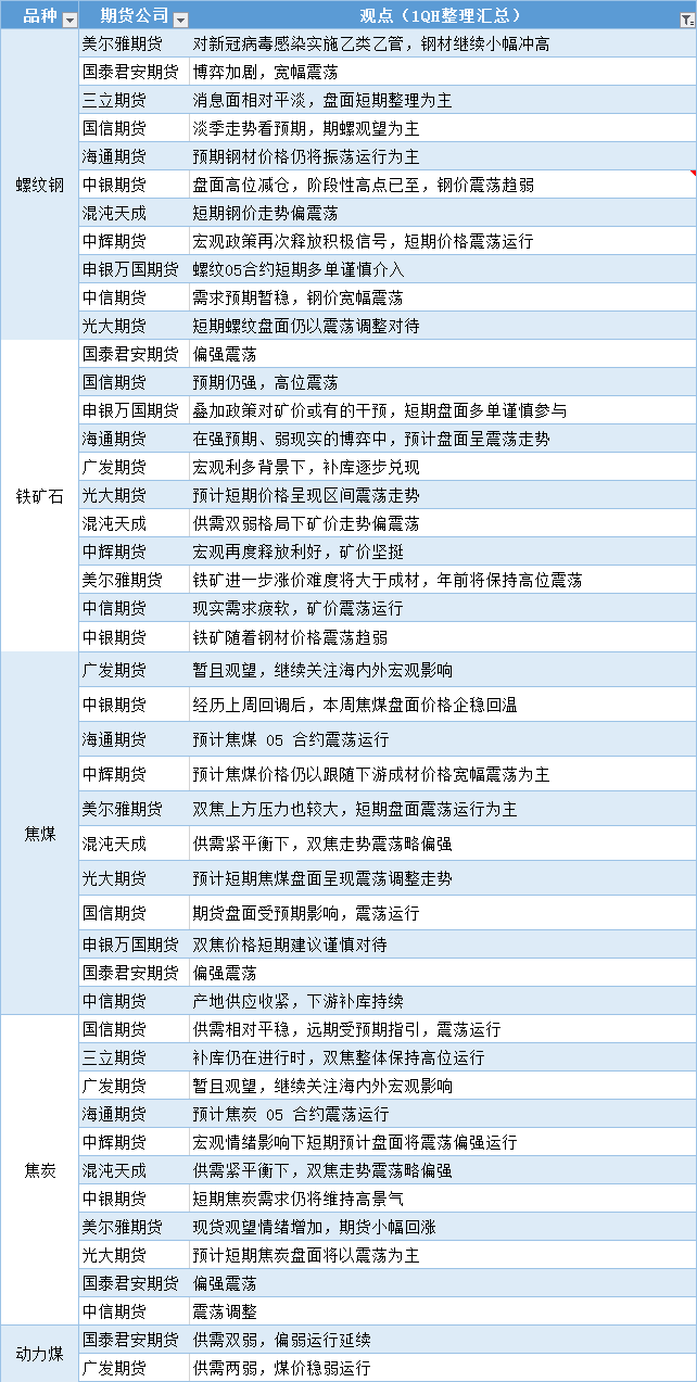 期货公司观点汇总一张图:12月27日黑色系(螺纹钢、焦煤、焦炭、铁矿石、动力煤等)