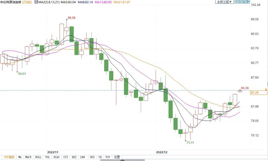 布伦特原油主力合约价格报85.28美元/桶。