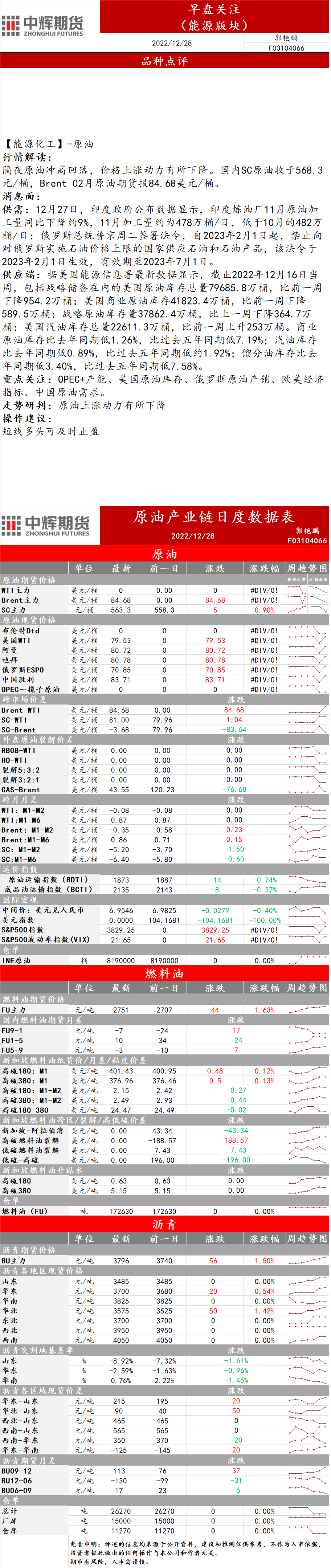12月28日,中辉期货发布能源早盘关注,称原油上涨动力有所下降,短线多头可及时止盈。
