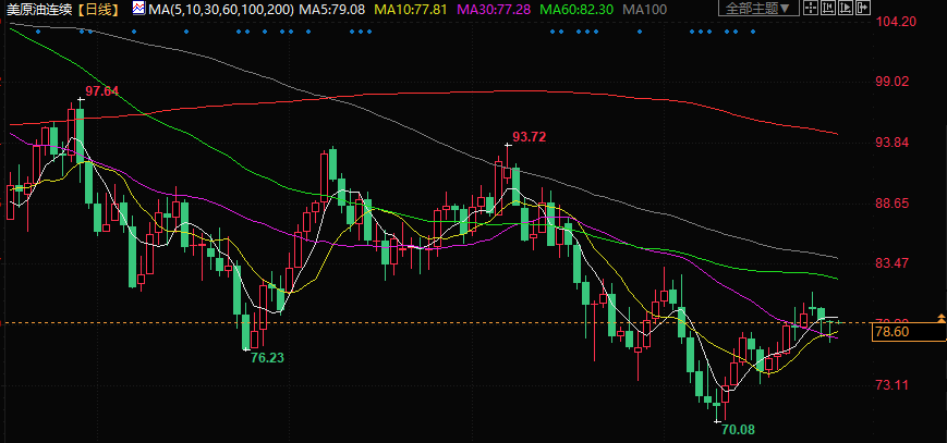 美国原油期货在上午的交易中下跌0.79美元,或1%,报每桶78.17美元。美国上周石油产品供应量升至2021年12月以来的最高水平。