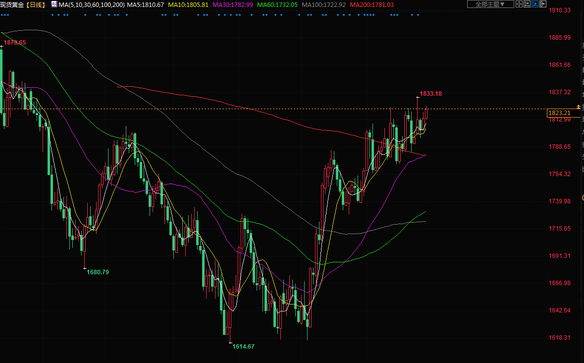 现货白银下跌0.4%,至每盎司23.79美元,铂金上涨0.9%,至1063.43美元,钯金下跌1.6%,至1784.76美元。白银和铂金势录得年度涨幅,钯金将在今年下跌5.6%。