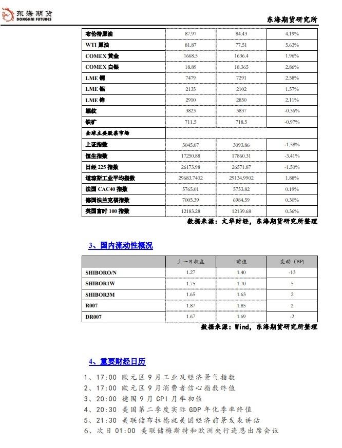 标题:【东海期货9月29日宏观日报】:美元短期回调,全球风险偏好有所升温