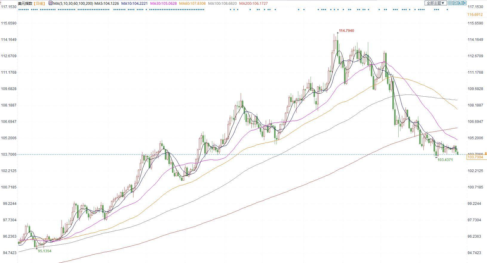 美元指数逐步反弹,保持在103上方至关重要。