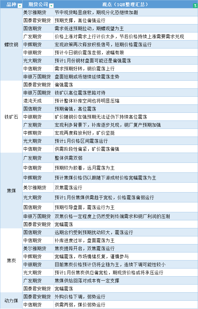 标题:期货公司观点汇总一张图:1月3日黑色系(螺纹钢、焦煤、焦炭、铁矿石、动力煤等)