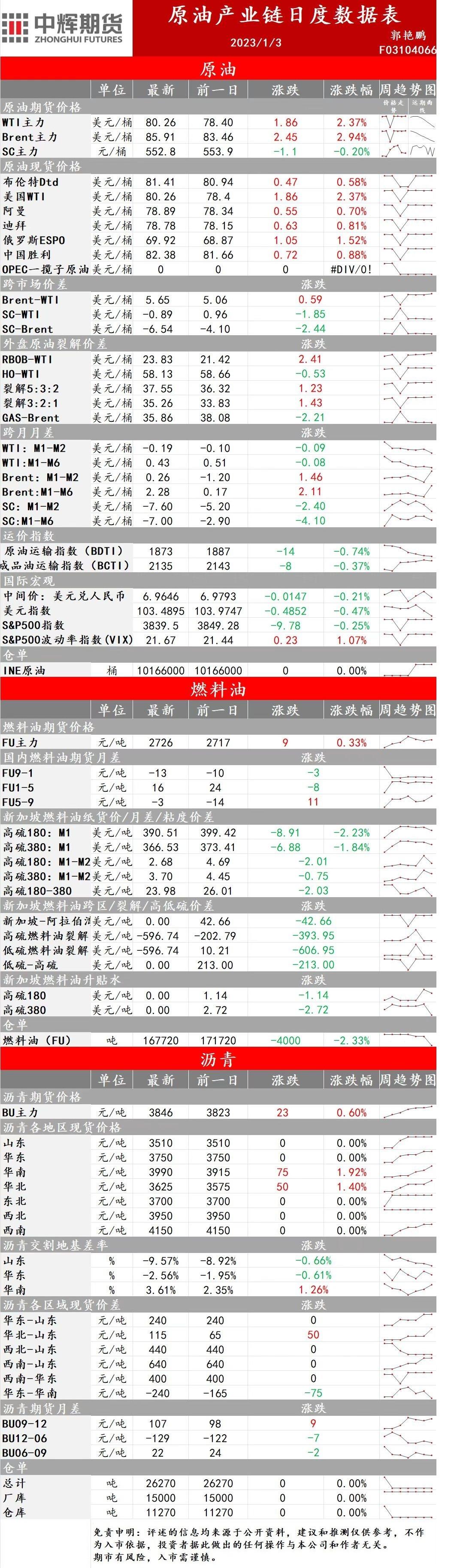 1月3日,中辉期货发布能源早盘关注,称原油价格下方有中国需求回暖和俄罗斯减产支撑,建议空头注意防范风险。