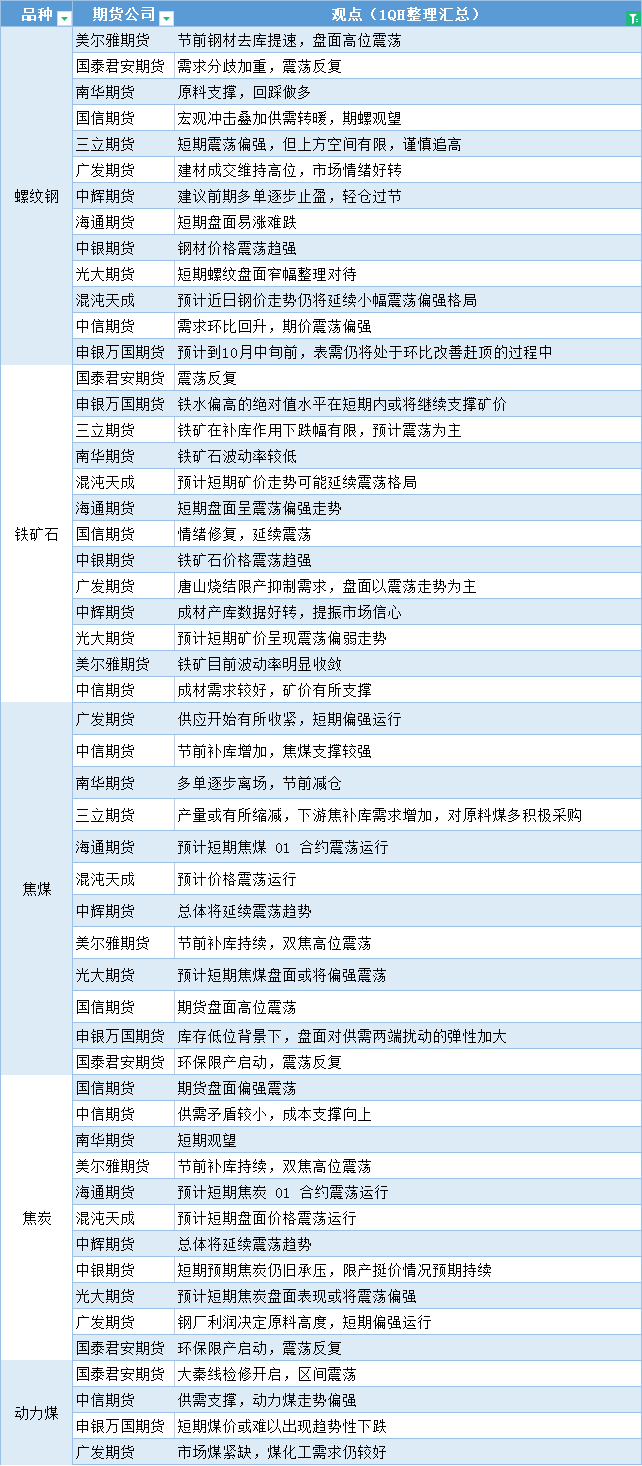 标题:期货公司观点汇总一张图:9月29日黑色系(螺纹钢、焦煤、焦炭、铁矿石、动力煤等)