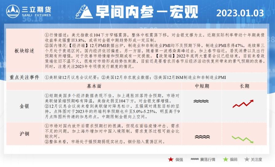 三立期货早间内参显示,金银中短期偏震荡,长线偏多;沪铜中短线偏向震荡,长线偏空。