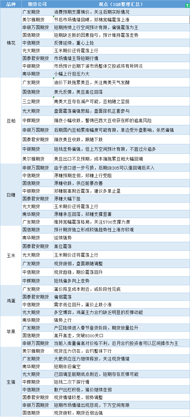 标题:期货公司观点汇总一张图:1月4日农产品(棉花、豆粕、白糖、玉米、鸡蛋、生猪等)