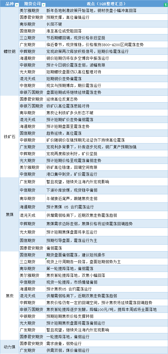 标题:期货公司观点汇总一张图:1月4日黑色系(螺纹钢、焦煤、焦炭、铁矿石、动力煤等)