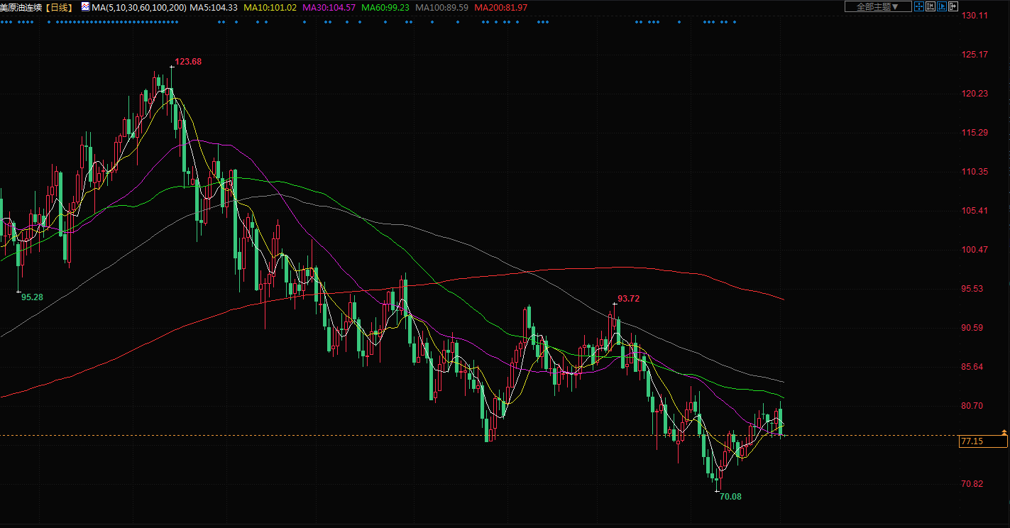 汇通财经APP讯——1月4日(周三)亚市盘初,美油交投于77.18美元/桶;油价周二下挫近4%,受累于需求数据疲软、经济前景黯淡和美元走强,市场静待美联储会议纪要,投资者对美联储的加息路径感到担忧。