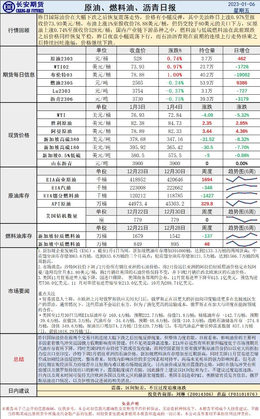 1月6日,长安期货发布原油早评,认为原油将震荡,建议区间短差,不宜过度追涨逐跌。