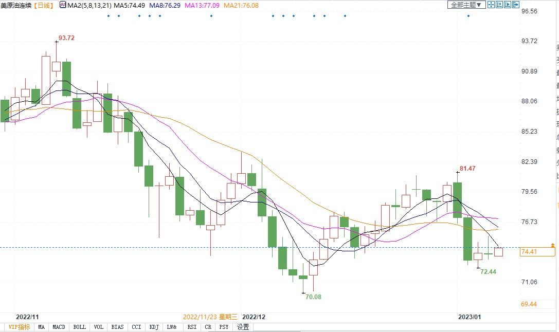 北京时间1月9日10:11,WTI原油主力合约报74.48美元/桶