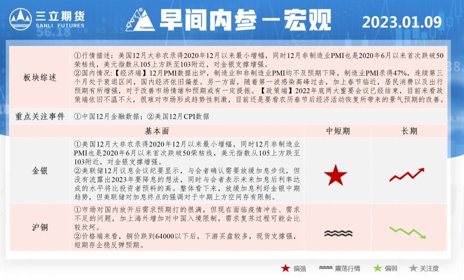 三立期货早间内参显示,金银中短期偏向多头,长线偏多;沪铜中短线偏向震荡,长线偏空。