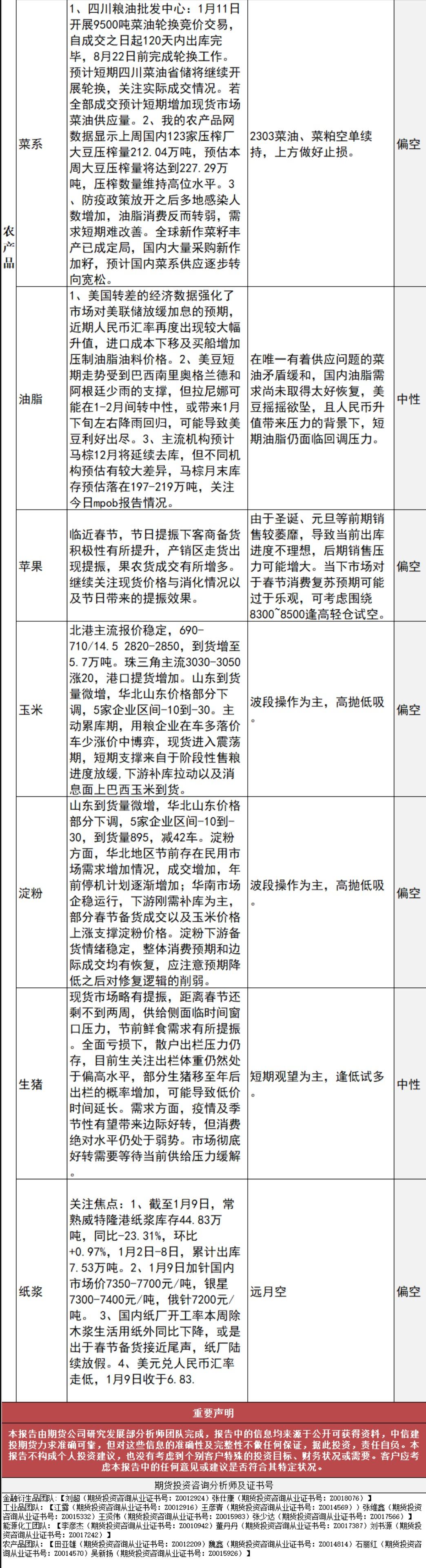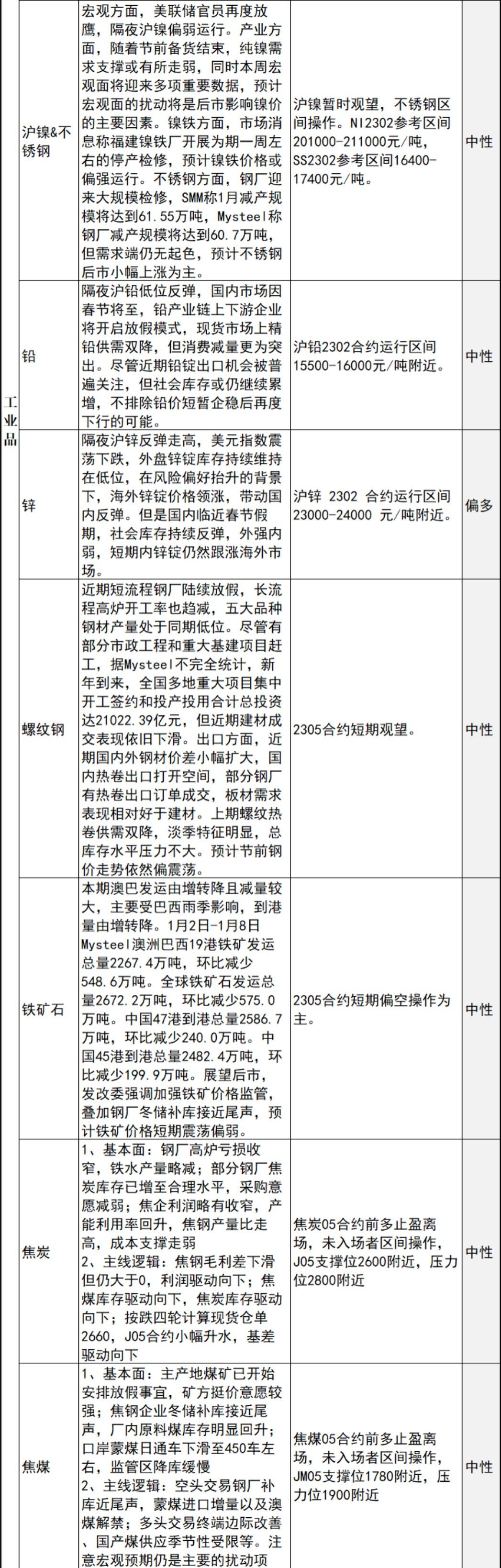 镍与不锈钢:随着节前备货结束,纯镍需求支撑或有所走弱;不锈钢方面,钢厂迎来大规模检修,SMM称1月减产规模将达到61.55万吨,Mysteel称钢厂减产规模将达到60.7万吨,但需求端仍无起色,预计不锈钢后市小幅上涨为主。