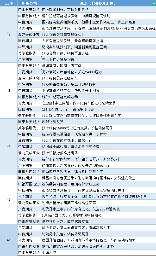 标题:期货公司观点汇总一张图:1月11日有色系(铜、锌、铝、镍、锡等)