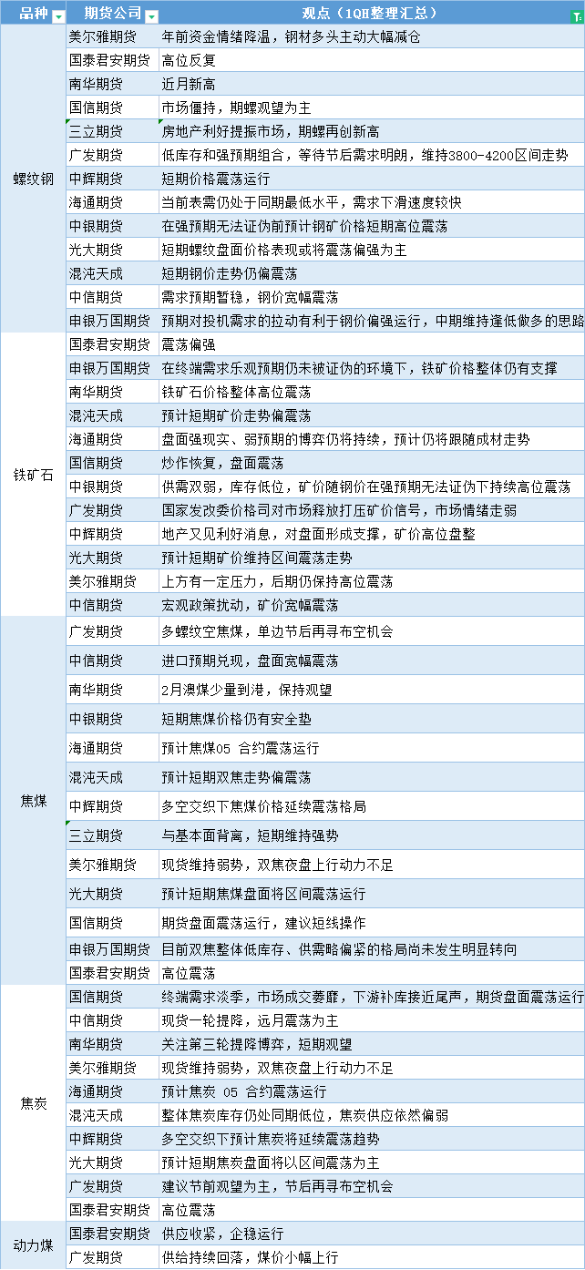 标题:期货公司观点汇总一张图:1月12日黑色系(螺纹钢、焦煤、焦炭、铁矿石、动力煤等)