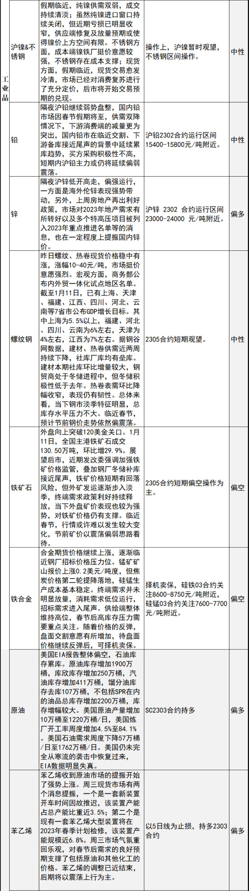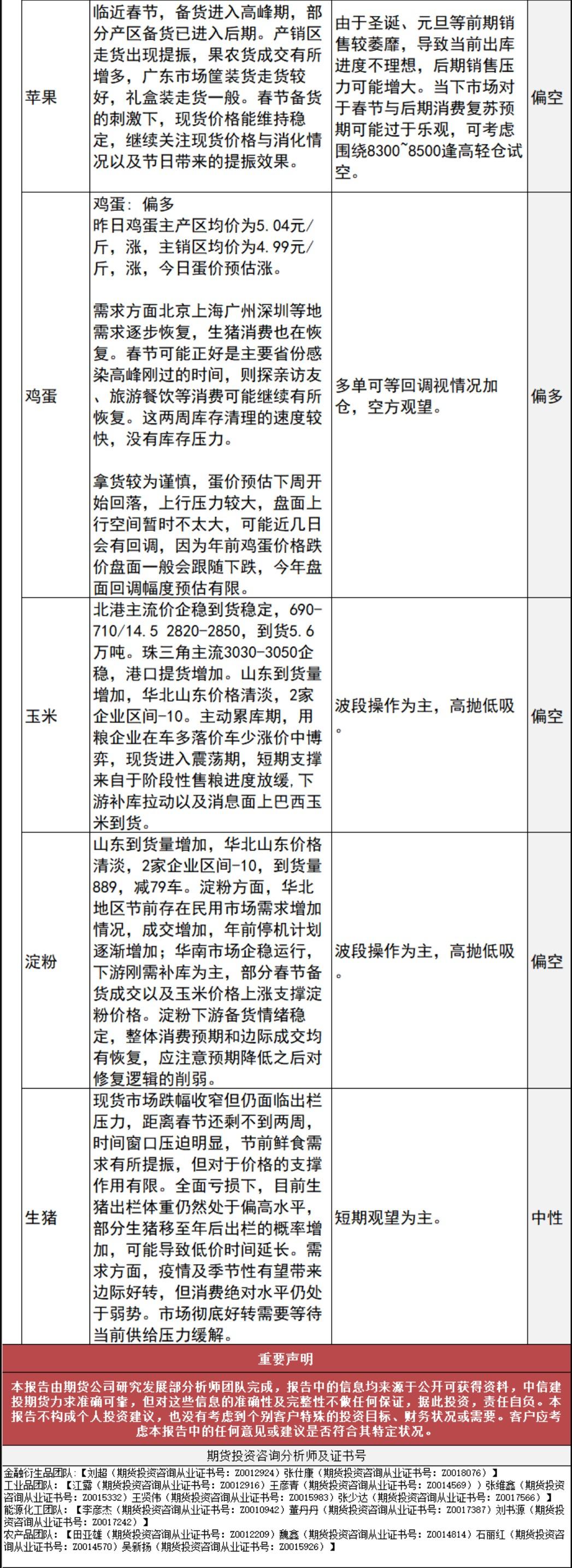标题:中信建投期货1月12日早间交易策略