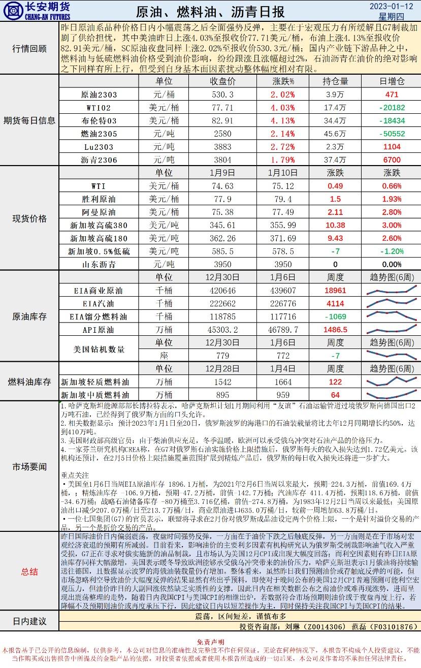 1月12日,长安期货发布原油早评,认为原油将震荡,建议区间短差,谨慎布多。