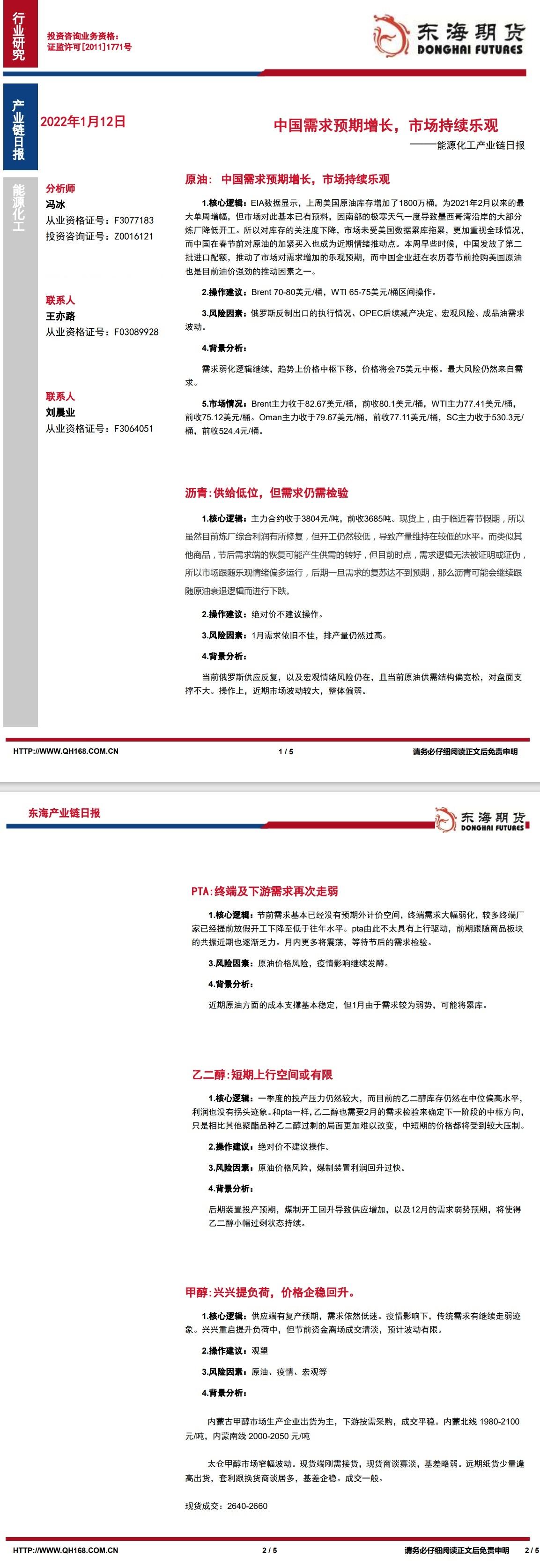 标题:【东海期货1月12日产业链日报】能化篇:中国需求预期增长,市场持续乐观